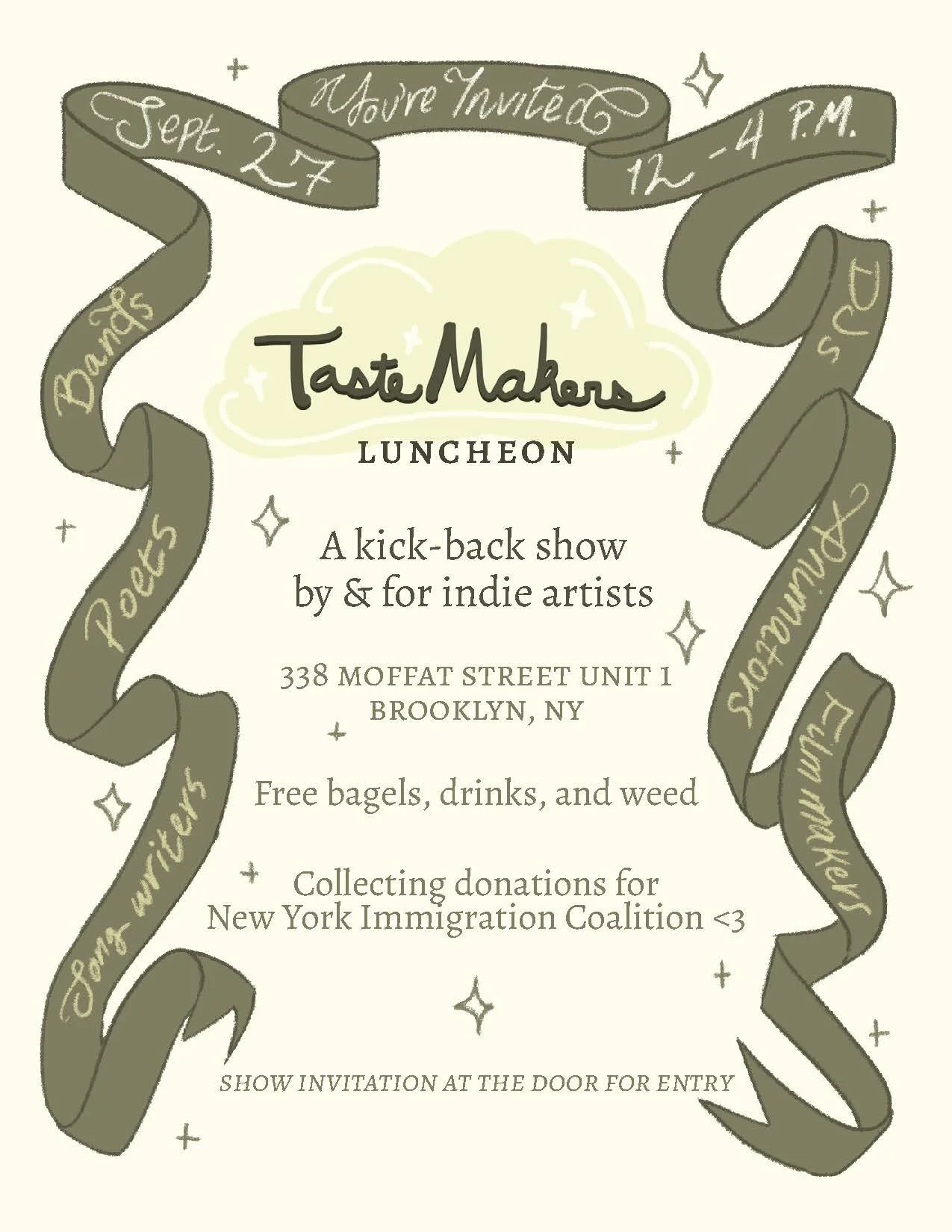 Tastemakers is the ultimate mingling place for artists on their day off from rehearsal and bartending - offering a friendly afternoon of performances by local artists, crafty activities, and goodies - as free as possible, while collecting money for causes such as the New York Immigration Coalition.